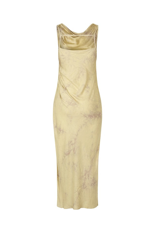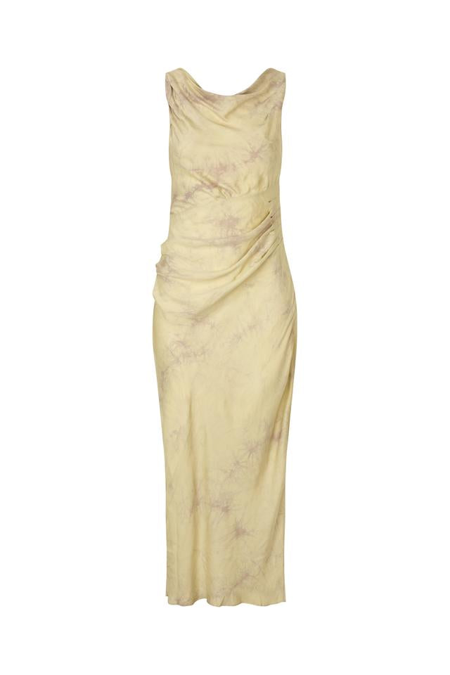 שמלת מקסי לנשים מבית המותג סמסו סמסו. בגזרה צמודה, עם כיווצים אלגנטים בבטן, בשילוב כתפיות דקות בגב, עם מפתח ישר וצמוד.